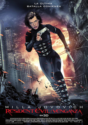 Que alguien le diga al señor Anderson que no sabe hacer películas de acción y que son una flipada que da risa. Tampoco parece saber que la moda Matrix ya está más que pasada. Ya no es que la película no se parezca en nada a los juegos sino que los personajes tampoco se parecen, Leon un poco, pero para lo que sale y lo que hace mejor que no hubiese aparecido en la peli. Lo mejor de la peli, igual que en la anterior, son los molondrones del hacha, que la protagonista y una Ada Wong más china que nunca se ventilan sin despeinarse. El resto un cúmulo de despropósitos. Una lástima, con el gran material que tenían en los videojuegos podrían haber hecho una saga de obras maestras no una saga de patadas voladoras, superexplosiones, tiros a lo Matrix, volteretas imposibles, supermegafantasmadas y frases patéticas.