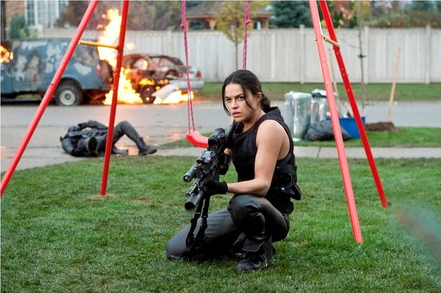 La pega que le veo es que hay algo de menos Zombies que en las anteriores y los enfrentamientos cuerpo a cuerpo aumentan considerablemente haciéndose un poco coñazos, pareciendo más un Mortal Kombat que un Resident Evil, y alargando un poco la cosa. Y aunque hasta ahora decía que hiciesen los Resident Evil que les diese la gana ya que me entretenían y disfrutaban, en esta ya se nota que el argumento no puede dar mucho más de sí y la trama se vuelve algo repetitiva, y que la sexta entrega ya debería de ser la última definitivamente, y viendo el final de esta, espero que Anderson tenga un buen As guardado en la manga, porque no me imagino cómo puede hacer una película entera SPOILER