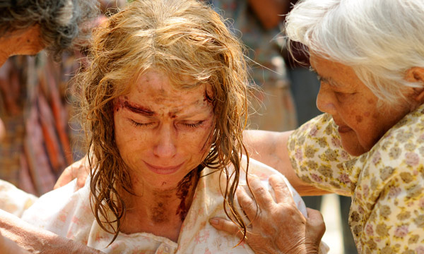 Y ese es el principal fallo de "Lo Imposible", un dramón de mucho cuidado que juega con el espectador de la manera más facilona posible, como si la gente fuese tonta o, peor aún, como si fuese un telefilme de tarde de cualquier cadena pero, ah, en el cine, con un buen presupuesto, caras muy conocidas y un acabado técnico de aupa. Porque si algo bueno tiene el filme es su acabado técnico, sus efectos, su transformación del Cielo donde pasa la familia protagonista sus vacaciones en un Infierno; realmente angustioso, inquietante, crudo y estremecedor. Y eso es lo que consigue salvar a la película por los pelos, una película que hace agua por todas partes, y que se me perdone el chiste fácil.