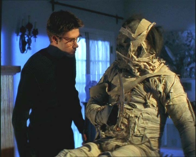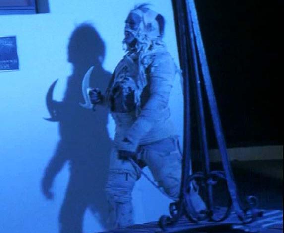 Esta cinta es la mediocridad en estado puro. La momia canta a tres kilometros que es un actor con una careta, y mas que con vendas parece que esté envuelta con papel higiénico usado. Guión estúpido, personajes estúpidos, diálogos estúpidos, situaciones estúpidas (lo de la profesora que en vez de intentar huir se queda quieta mirando como la momia levanta la daga para cortarle el cuello, la chica que estando muerta levanta un brazo y lo descuelga por el borde de la bañera para que la cámara lo vea, el "traje de ceremonia" del pringadillo con gafas metido a sacerdote azteca.......), y la "pelea" final del guaperas con la momia, que mas que pelear parecía que estaban bailando una sardana.