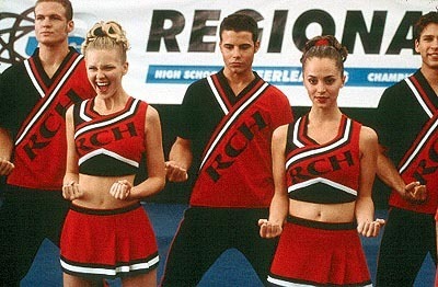 Buena película para adolescentes, con unos números espectaculares y una trama atractiva, pero desaprovechada. Bueno, estamos ante una comedieta q no da para muxo, y como ya he dicho la trama comienza muy bien, pero se va apagando como una velita hasta q llega a aburrirte, pero se vuelve a solucionar con un genial final (ya era hora de q una comedia adolescente no tuviera el happy end q tienen todas). La música, correcta, aunke q kereis q os diga, es q en estas pelis la música siempre es la misma : temas pop-rock con unos ritmos pegadizos (La mejor es la canción del final "Hey Mickey", q me encanta). En cuanto a las actuaciones estan todas bien, especialmente las de las tres xicas protagonistas : Kirsten Dunst es una de las mejores actrices q existen y akí la verdad es q desentona un pelín, Eliza Dushku esta genial en su papel de chula (acordaos de su Faith en "Buffy cazavampiros") y Gabrielle Union, aunke sale muy pokito, cuando lo hace lo clava. Las coreografías estan muy bien y, además, siempre me ha gustado ver a las animadoras bailar y montar esos números. Lo q son un poco decepcionantes son algunos chistes q caen por completo en la estupidez.
