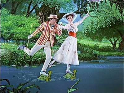 Una de las películas que más veces he visto repetidamente en mi vida, acaso la que más... De todos modos, siempre me he quedado con las ganas de ver el film escuchando las canciones originales y no los doblajes (aunque reconozco que son de calidad), conformándome hasta ahora con la BSO que me compré. Cierto conservadurismo sí existe, aunque yo prefiero quedarme con otros apuntes que nos ofrece la película: la idea de la caridad, de ayudar a esa pobre señora que vendía comida para las palomas y cómo el no hacerlo acaba siendo fatal para Mr. Banks, que pierde su empleo... El vivir la vida alegremente, riendo, disfrutando; el saber que con quien deben ser felices los niños es con sus padres, y es el cometido de éstos intentar que lo sean en la medida de lo posible...; ¿y por qué todo ha de ser tan formal?... ¿a quién no le gustaría un día tomarse un café en el techo o darse un paseo por un cuadro pintado en la acera?... No se puede hacer esto, claro está, pero si podemos darnos a la improvisación, al ser originales, incluso un poco ridículos ¿por qué no?... Y dar rienda suelta a nuestra imaginación... Éste es el maravilloso mundo del film de Robert Stevenson, que cuenta como temas musicales más afortunados el "Supercalifragilísticoespialidoso", "Un poco de azúcar" y "Vamos a volar una cometa".... Mencionar que, a parte de la pareja protagonista, merece especial atención la presencia de un buen actor inglés, David Tomlinson, también protagonista en "La bruja novata". Y, dato para los amantes de las estadísticas, el niño-actor que encarnó al pequeño Michael Banks murió poquísimos años después en circunstancias hoy todavía no del todo esclarecidas.