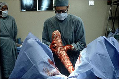 Por ahora la mejor película que he visto del aclamado Cronemberg. Cada vez que aparece Jeff Gollum convirtiéndose en mosca se me pone los pelos de punta, no se como la gran Geena Davis podía aguantar esa figura medio mosca medio humana acercándose, yo directamente le echaba un un insecticida en la cara. Los fx son magistrales, tan reales que dan mucho asco, sobre todo cuando le arranca a Brundle-mosca la mandíbula y se le cae una oreja y hecha la pota, buaggg. Me quedo con las escenas de Brundle-mosca trepando por las paredes y por el techo y pegando sustos rompiendo cristales y cayendo encima de su presa.