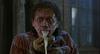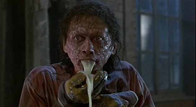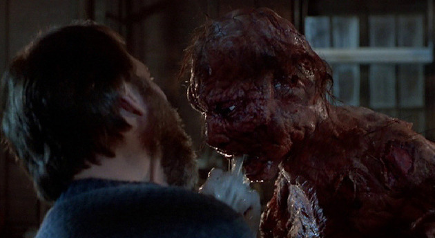 La primera es el momento en que Geena Davis va a ver a Goldblum cuando empieza a mutar en mosca, y el le explica lo que le ocurre y se le cae una oreja y vomita esas babas corrosivas (Increible y acojonante a la misma vez)
