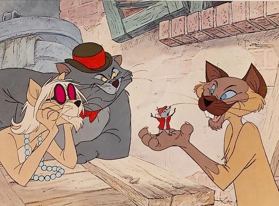 Al ver el éxito que tuvieron utilizando perros en 101 Dálmatas, ahora Disney nos muestra una historia de gatos, la cual es algo similar a lo de los cachorros con eso de que el Mayordomo se quiera deshacer de los gatitos para tener él la herencia. La verdad es que es divertida y como siempre la animación es excelente y los gatitos dan ganas de achucharlos. Me quedo con la parte en la que se encuentran a las alocadas ocas, o la persecución del mayordomo por los dos perros viejos, muy original y divertido, o cuando encuentran al gato callejero y montan una gran fiesta en el ático con música de Jazz.