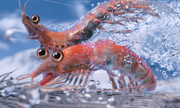 Volviendo a los personajes, las mencionadas gambas Bill y Will, que tienen predilección por los nombres acabados en “ill”, son cojonudos, lo más divertido de la cinta de lejos, y los mejores creados, con una textura de escamas impecable, si hasta se les ven las manchitas, y esa lucecita que brilla en su pecho que no sabía que tenían, además las escenas cuando salen en manada todo naranja me parecieron una pasada, si se ve en 3D mejor, ya que aunque no sea perfecto, hay escenas de autentica belleza visual.
