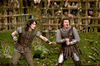 En el lado positivo, y es en lo que más funciona la película, es como aventura de fantasía, con un argumento delirante (con una pena de guión), y situaciones rocambolescas, y es que tanto el maquillaje como los efectos especiales están logrados. Me gusto especialmente el modo de aparecer y atacar de las “tres madres”, la aparición del mago Magín (la verdad que esta criatura tiene su encanto, me encanta que hayan utilizado una marioneta (me recordó a una criatura de Cristal Oscuro), y además bien hecha, con algunos retoques por ordenador como su cerebro que quedan geniales, pero para estar a tono con la película le han dado una personalidad de estar salido perdido, pero es de lo poco que me hizo algo de gracia de la película), el ataque de la mano gigante con cinco cabezas de dragón (un diseño curioso y original, y es este tipo de cosas de lo que me esperaba de una comedia medieval), y para acabar el ataque del minotauro, del que se llevan un recuerdo muy curioso (y predecible viendo los derroteros por los que va la película).