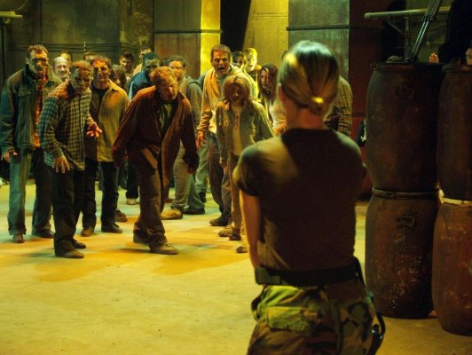 Supuestamente un remake del Día de los Muertos de George Romero pero que salvo el nombre y algunos detalles de la trama no tiene nada que ver , aquí la acción transcurre en el típico Pueblo Norteamericano donde supuestamente no pasa nada , claro está antes de que suceda la amenaza de turno, en este caso un misterioso Virus que transforma a las personas en Zombies o más bien Súper Zombies por que además de correr como competidores olímpicos son capaces de saltar por los edificios y trepar paredes o techos Al más puro estilo de Spiderman, ya nada mas faltaba que Volaran y lazaran Rayos por los ojos (jajaja), bromas aparte debo admitir que su apariencia es bastante lograda. El Director Steve Miner quien dirigió películas como Halloween H20 y Mandíbulas (Lake Placid), tiene experiencia en el género y al menos le ha echado ganas al asunto para que la cosa se haga algo pasable ya que tiene un ritmo ágil pues desde el inicio va al grano y en ningún momento se hace pesada salvo al final en el Bunker donde las cosas se desinflan y el final es muy decepcionante.