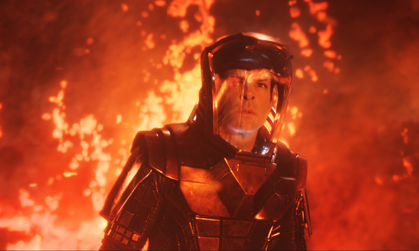 La historia comienza en un planeta de cuyo nombre no puedo acordarme, pero en donde Kirk y Spock tienen la misión de desactivar un volcán adentrándose en una tribu prohibida para evitar una catástrofe. Es en este prologo el único momento en el que veremos algo de espíritu de aventura y de color en la cinta, ya que después rápidamente pasaremos al monótono tono grisáceo que tan de moda se ha puesto en todas las súper producciones heroicas actuales, donde todo es trágico, plomizo y rutinario, dejándome con ganas de ver más aventuras como ese inicio. Así bien entraran en la historia choques y discusiones entre los protagonistas, eso si, muy superficialmente, y la llegada de un nuevo villano, digo nuevo si nos situamos en el espacio temporal del film al tratarse de una precuela de lo visto en series y películas de ‘Star Trek’, ya que al gran Khan ya lo hemos visto con anterioridad, y cuya historia esta mas o menos bien entrelazada con los otros Films.