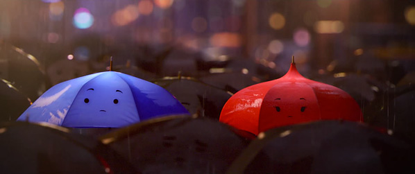 En un mundo donde todo es gris, dos extraños paraguas de distinto color se encuentran bajo la lluvia. Se miran con complicidad, tímidamente, ninguno de los dos había visto algo parecido, cosa que les atrae al instante. Por cosas del destino, sus dueños toman rumbos diferentes, y se separan irremediablemente.Añadir Anotación