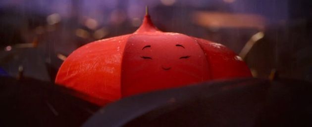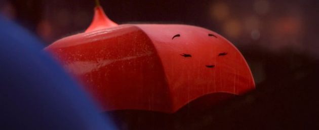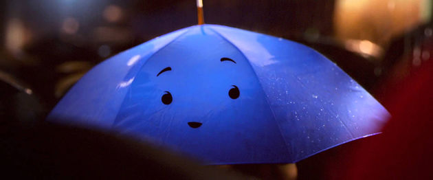 Es solo otro viaje por la noche hasta que la lluvia empieza a caer, y la ciudad se llena de vida con el sonido de las tuberías que gotean, el susurro de los toldos y el gorgoteo de los canalones. Y en el medio, dos paraguas -- uno azul, otro no -- se enamoran eternamente.Añadir Anotación