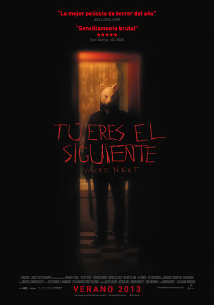 | Crítica |  Puntuación del crítico: 8 | Uf, hacía ya tiempo que no me encontraba con una reseña complicada de hacer. En este caso, como en todas las anteriores reseñas complicadas, la dificultad viene dada por el hecho de no poder soltar spoilers sobre una película que tiene una de sus principales bazas en el misterio que la rodea. "Tú eres el siguiente" tiene el honor de contar con uno de los mejores trailers que he visto nunca. ¿Porque es espectacular? No. ¿Porque no dan ganas de ver otra cosa? No. ¿Por su uso de la música y las escenas de acción? No. El arte del trailer del filme de Adam Wingard reside en que en un tiempo donde es habitual que los trailers nos revienten secretos de las películas, este trailer nos cuenta la trama principal... y nada más, una trama principal que nos viene en cualquier sinopsis sobre el filme.