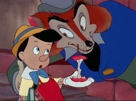 Ayer la vi por primera vez, coincido en que es un clásico de la animación, lo de entrañable ya son palabras mayores ya que es una de las películas más crueles de Disney y la más manipuladora con los niños y claro ejemplo es toda la secuencia en la isla donde los niños que fuman y beben se convierten en burros. Aunque lo que más me llamó la atención, y perdón que lo mencione, es lo zoofilica que es esta película, primero por la relación amor-odio entre el gato y el pez de Geppetto que se pegan más de 2 y 3 morreos entre ellos, hummm! Al guionista le debía poner imaginarse a un gato y a un pescado enrrollandose, aunque esto no es nada comparado con el calentorro del Pepito Grillo que se tira toda la película insinuandose sexualmente a las muñecas de madera de Geppetto (me quedé con los ojos como platos cada vez que el grillo le tocaba el culo a una muñeca o se sonrojaba al verle las bragas de madera, increible). Yo me lo pase muy bien viendo todo este catalogo de perversiones, pero me hubiera gustado saber que hubiera pasado si la hubiera visto de pequeño: - Mamá ¿Qué sale de la unión de un gato y un pescado? - Yoquesé niño a mi que me preguntas - ¿Y de un grillo con una muñeca de madera? - ¡Pepe! ¿Se pue saber que pelicula le has traio al niño?