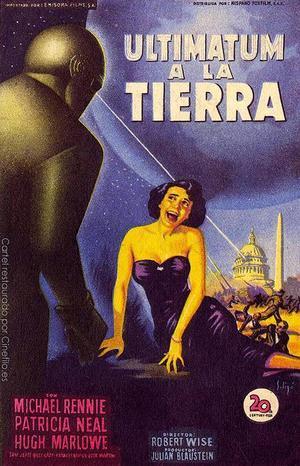 Obra maestra de la ciencia ficcion de los 50 de ese gran director que es Robert Wise. Sensacional, se trata de la humanización y desmitificación de los extraterrestres que vienen en son de paz pero alertan del mal camino que lleva el planeta, con lo que estoy totalmente de acuerdo. Uno incluso se identifica con el pobre Klatuu, y nunca un marciano ha sido mas interesante y elegante e inteligente que este. Y que decir de ese robot tan simpatico de Gorn, y la mitica escena en la que Patricia Neal debe hacer que el robot entre en razón y no intente exgterminar a la raza humana: "Klaatu Barada Niktó!" son las palabras que debe decirle, y ¡que tensión cuando parece que se le han olvidado!. Destacar la sobresaliente banda sonora del gran Bernard Herrmann, obra maestra absoluta, y la primera en la que se utiliza el mítico melotrón sonido extraplanetario.