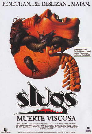 Me extraña que nadie haya enviado aún este "clásico" del terror español. Se trata de una producción española-norteamericana y dirigida por Juan Piquer Simón. Una película sobre unas babosas que se extienden por una ciudad y se alimentan de...carne humana. Buena la escena en que un tio se come un Slug y luego le explota la cabeza en un restaurante, o aquella otra en que los bichejos sorprenden a una pareja en la cama y se les introducen por todo el cuerpo. A destacar los fx, repugnantes y corrosivos, se llevaron el premio Goya en 1989. Al final hay una sorpresita, bastante previsible pero bueno. Entretenida