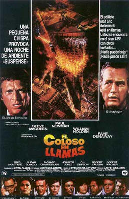 | Crítica |  Puntuación del crítico: 8 | Nominada a 8 Oscar de Hollywood en el año 1975, y ganadora de tres, "El Coloso en llamas" se convirtió en un tremendo éxito de público. Esta monumental película supone uno de los máximos exponentes de eso que llamamos "cine de catástrofes", muy prolífico en lo años 70, y que engloba films como "Inundación", "Terremoto", "Aeropuerto (75,77 y 80)", "La aventura del Poseidón", "El enjambre", "La tragedia del Hindenburg", "Huracán" o "Pánico en el puente". La estructura de la película no difiere mucho de la del resto de miembros del género: Gran elenco de actores famosos que intentan salvar el pellejo (con mayor o menor éxito) mientras los servicios de rescate la fastidian una y otra vez. Sin embargo, en este "Coloso en llamas", destaca la presencia de dos actorazos protagonistas, en pleno apogeo, como son Paul Newman y Steve McQueen, que dotan a la película de mayor credibilidad (uno como afamado arquitecto y otro como jefe de bomberos)y que ofrecen un gran duelo interpretativo ("Saben que sólo se puede apagar un fuego hasta el séptimo piso y ustedes se empeñan en construir los edificios cada vez más altos") y los enormes y trabajados decorados (la escena en la que el rascacielos se ilumina en la noche o en la que los pisos van saltando por los aires, por ejemplo). El espectador también disfrutará de los quebraderos de cabeza de los bomberos, que se las ingenian de mil maneras para intentar rescatar a los invitados a la fiesta, y de la gran música de John Williams. En fin, una espléndida superproducción de las que ya no se hacen (y que desgraciadamente nos trae recuerdos del 11-S) y que te mantiene en tensión hasta que acaba, como una pesadilla, con el esqueleto del edificio totalmente carbonizado.