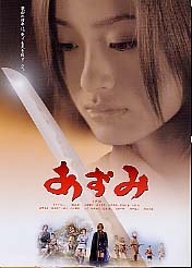 Ryuhei Kitamura, uno de los cineastas japoneses más punteros del momento, sorprendió hace unos años con la impactánte "Versus" y ahora está enfrascado en el rodaje de la última y esperadísima película sobre Godzila. "Azumi" está basada en un popular cómic nipón, del que el realizador ha plasmado muy bien la estética. Los combates son espectaculares y muy trabajados, los actores hicieron la mayoría de las escenas de lucha lo cual es de admirar. Es una película de entretenimiento, sin pretensiones, con una banda sonora cojonuda y un trabajo estupendo de la protagonista, Aya, que aparte de estar buenísima mete unos tajos que no veas. Kitamura es conocido también por su original forma de rodar las películas. Las escenas de acción en este film son un buen ejemplo, especialmente el combate final entre Azumi y Bijomaru, filmado con la cámara girando verticalmente mientras ellos se dan espadazos. Me gusta, es muy disfrutable en su conjunto y aún más en esa batalla final Azumi Vs 200 hombres, ninjas contra samurais, bandidos... un exceso del copón donde llueve la sangre. Por último el sentido del humor que también está presente, no tanto como en "Versus" (la cual me parece superior), como en la escena de la muerte de Bijomaru. Os recomiendo el DVD con los "Making" porque el Kitamura es un cachondo mental el tio, muy divertido.