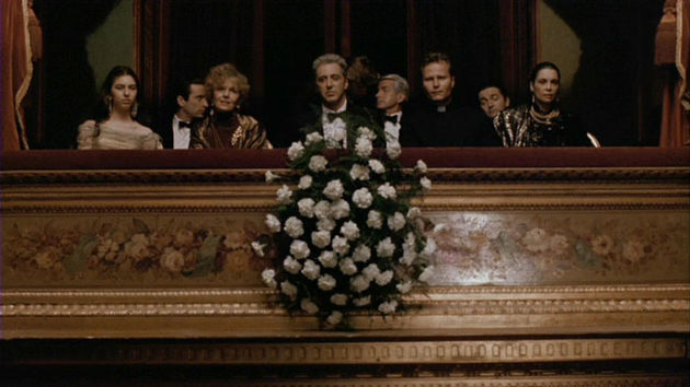 Todo lo demás me parece pefecto, desde la fiesta inicial hasta el montaje final en la ópera, los ajustes de cuentas de la familia, el nombramiento del nuevo Don Vincenzo (con esa música...) y el final de los Corleone.