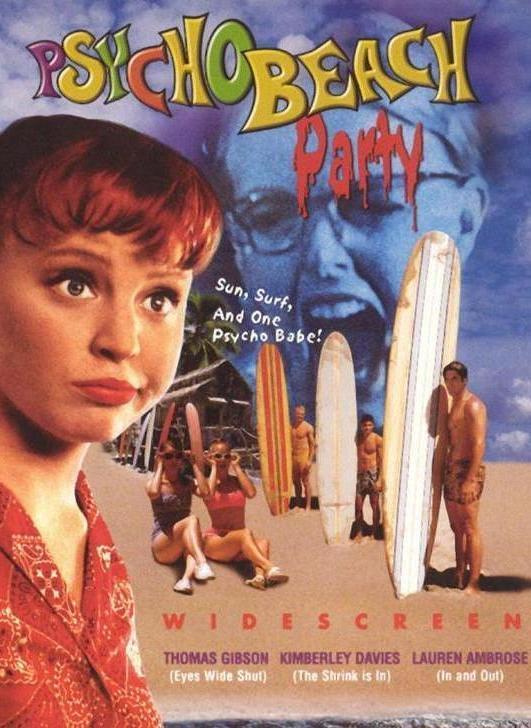 Divertidísima parodia sobre las películas slasher de terror y serie B de los años 70, mezclándolos a su vez con los psycodramas de los años cincuenta y con el antiguo cine chillón adolescente. Lauren Ambrose, la protagonista de la serie “A dos metros bajo tierra”, esta perfectamente desternillante en su papel de joven psicotica con doble personalidad. Nicholas Brendon, Xander en la serie Buffy, esta en su salsa como salidorro playero. Beth Broderick, Zelda Spellman en Sabrina cosas de brujas, también tiene un puntazo de papel. Con situaciones divertidísimas, un guión simplón pero irónico, música surfera de la época, una forma de rodar cutre (esas escenas de surfeo o la cabeza cortada de la chica de silla de ruedas) hace que esta película sea bastante disfrutable. Con bastantes buenas criticas a sus espaldas y con el Premio especial de la mejor película del jurado joven del la Semana de cine Fantástico de Málaga 2001, Psycho Beach Party es un titulo esencial para quienes disfruten con las películas Bizarras. Creo que en Latinoamérica se titulo “Verano Bizarro”.