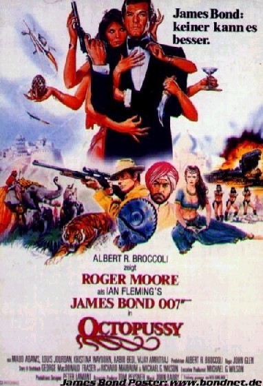 | Reparto | | Roger Moore (James Bond), Maud Adams (Octopussy), Louis Jourdan (Kamal Khan), Kristina Wayborn (Magda), Kabir Bedi (Gobinda), Steven Berkoff (General Orlov), David, Anthony Meyer (los gemelos), Vijay Armitraj (Vijay), Desmond Llewelyn (Q), Robert Brown (M), Walter Gotell (General Gogol), Geoffrey Keen (Ministro de Defensa), Suzanne Jerome (Gwendoline), Cherry Gillespie (Midge), Albert Moses (Sadruddin), Douglas Wilmer (Jim Fanning), Andy Bradford (009), Lois Maxwell (Miss Monepenny), Michaela Clavell (Penelope Smallbone) |