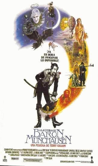 | Sinopsis |  En un pueblo europeo sitiado por las tropas turcas enemigas durante el siglo XVIII, se representa una obra en torno a las fantásticas aventuras del fabulador Barón Munchausen, apoyada con un efectivo espectáculo visual. Cuando en el escenario un actor representa la curiosa personalidad del hombre más mentiroso del mundo, el Barón Munchausen, aparece ante el pequeño grupo de actores y ante el público presente el auténtico Munchausen con la intención de salvar a la población de los invasores. Nadie le cree, excepto Sally, la hija del empresario. Tras salir del pueblo en un peculiar globo, confeccionado con ropa interior femenina, el barón va en busca de sus extraños amigos, Berthold, Gustavus, Albrecht y Adolphus, cada uno de ellos poseedor de un particular y extraño poder.