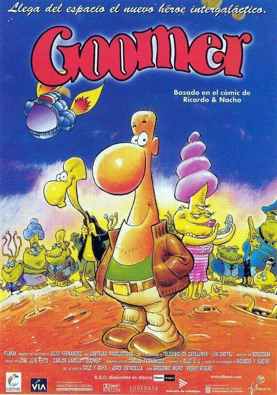 Adaptación del cómic del mismo nombre, Goomer resulta una divertida película un tanto típica en el humor Español, tanto es así que Goomer parece Torrente en dibujos animados y con un humor más infantil. La animación es pobre, de serie de televisión, pero a mí me gusta tal y como esta, si hubiesen utilizado las nuevas tecnologías no habría quedado tan bien como esta. Con una banda sonora compuesta casi toda de canciones del ya extinguido grupo “Blue 4 U” tan famoso en aquella época en nuestro país por canciones sacadas en anuncios de televisión de cervezas, le da un toque a la película más moderno y porque no, más comercial. No he tenido el placer de leerme ningún comic, pero los personajes que aparecen son tronchantes, el ascensor fumador, los canapés vivos, Elma,etc... todo lleno de cosas delirantes. Divertida y entretenida.