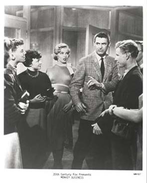 | Crítica |  Puntuación del crítico: 9 | Sensacional Screwball Comedy del Gran Hawks, que mezcla con acierto el delirio de "La Fiera de MI Niña", con una trama de cine de ciencia ficción a lo Profesor Chiflado. Lo delirante comienza pronto, ya con los créditos en los que Hawks frena la intención de Grant de abrir la puerta de su casa -y del film- demasiado pronto, se repite en tres ocasiones, y así consigue describirnos al personaje antes incluso del arranque de la palícula, un Grant de nuevo pardillo y eternamente despistado, que es como mas me gusta verle. Y así comienza la trama, con el chimpancé que es capaz en un momento de hacer lo que no ha podido Grant tras largos años de experimentos. De nuevo el delirio y animales tomando protagonismo, dos constantes de la Screwball. Sí unimos a esto el tema del matriarcado, recurrente en Hawks, y todos los momentos y situaciones disparatadas y desternillantes, como el primer rejuvenecimiento de Cary Grant, su caida y posterior salida sin ver absolutamente nada -lleva gafas cuando no está bajo los efectos del elixir-, de la lavandería del hotel o el crescendo y locura total del final, en el que todo se desmadra, y donde Cary al frente de un grupo de niños gamberros -como él en ese momento, con ocho años-, es capaz incluso de atar a un arbol y cortar la cabellera al ex-novio de su mujer*, ya que están jugando a los indios y le odia -como casi cualquiera que este viendo la peli- nos sale una gozada de comedia. Lastima que la película la estropee un poco Ginger Rogers, ya que en los momentos en los que está rejuvenecida y de niña, resulta patetica y dan ganas de pegarle un bofetón de lo poco convicente que resulta. Aún así, magistral, y el guión de tres grandes en lo suyo como Ben Hecht, Charles Laderer y I.A.L. Diamond es prodigioso. El título en inglés es mas acertado ya que tiene un doble sentido, lastima que no haya ninguna frase hecha en castellano que aune negocios y monos. Por cierto, nunca he visto a Marilyn tan guapa y graciosa como aquí y es mítico su encuentro por primeravez en pantalla con Cary Grant.
