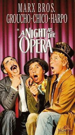 Genial, si bien la historia de amor no tiene tanto interés como las locuras marxistas. Tiene un montón de escenas insuperables, que han quedado como varias de las mejores del cine. Yo me reí muchísimo con la visita al policía a la casa de Groucho (lo de las cuatro camas), tal vez es la escena con la que me quedo del film...aunque sería injusto no mencionar otras como la del camarote o el lío que montan al final en la ópera. Ese humor surrealista y frenético único e inimitable que tienen las pelis de los hermanos Marx es de lo mejor que nunca le ha pasado al cine. Los diálogos desbordan ingenio, y sería imposible destacar tan sólo uno. Obra maestra. Irrepetible delirio.