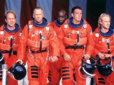 Jajajajajajaja despollante bazofia dirigida por el sr Michael Bay (cuyo nombre en los titulos de credito ya es para echar a correr). Como en todas las peliculas de Michael Bay efectos especiales y de sonido estupendos. COMO EN TODAS LAS PELICULAS DE MICHAEL BAY actuaciones horribles,guion escrito por un retrasado mental de 7 años , atropello de planos (deja la puta camara quieta joder), patriotismo ridiculo hasta en la sopa y escenas penosas por ejemplo el final con el tio diciendo solicito permiso para extrechar la mano del hombre mas valiente que he conocido(jajajajajajjaajaja es desguevante) o la escena del astronauta ruso (ruso tenia que ser) pegandole golpes a una maquina que no funciona y diciendo asi hacemos las cosas en Rusia (no la recuerdo muy bien pk hace tiempo que la vi pero la escena esa es ridicula , un pretexto para meterse con los rusos jajaja sr Bay la guerra fria acabo hace ya unos añitos , lea algun libro e informese por favor).La cancion de Aerosmith "I don’t want to miss a thing" tb mola inexplicable que la nominaran a los razzies. El resto para tirar a la basura.