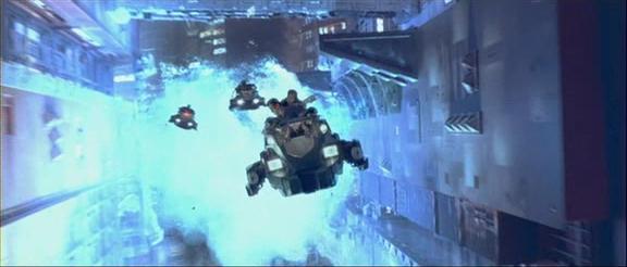 Bueno, no esta tan mal. La primera parte de la película promete, pero en la segunda la cosa decae bastante. Tenemos unos buenos efectos especiales, una ciudad bien recreada (mitad ‘Blade Runner’, mitad ‘El quinto elemento’), y bastantes escenarios construidos que no desmerecen en absoluto, quizá la creación de los trajes y motos ya este desfasada, pero así eran en el cine d los 90, además que el robot gigante sea artesanal y no hecho por ordenador le da bastante credibilidad y mola.