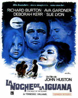 Como suele pasar en las adaptaciones de este autor todo ocurre en un espacio cerrado, asfixiante (casi puedes sentir el calor de México), entre los personajes surjen tensiones y poco a poco se van revelando verdades. La película habla de muchos temas como la fé, el amor, la poesía, el sexo, etc. Richard Burton sobrevive como puede rodeado de alcohól y mujeres... y vaya mujeres. Sue Lyon repitiendo el papel de Lolita que la hizo famosa, Ava Gardner como la viuda amargada y ninfómana (la escena en el mar con los dos guayabos), Grayson Hall como la vieja reprimida (genial la escena en que la Gardner le llama lesbiana pero sin utilizar esa palabra) y Deborah Kerr.Añadir Anotación