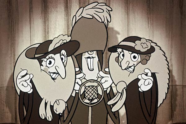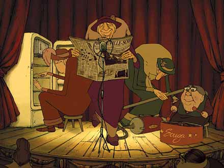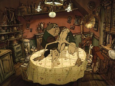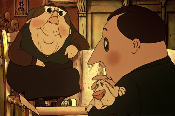 Maravillosa, me ha fascinado, me he pegado los 75 minutos con la baba colgando, que maravilla de animación, que originalidad, que, que... grandiosidad. La película no tiene apenas guión, pero da igual, los personajes lo expresan todo a la perfección, el perro ha creado uno de los mejores personajes que un canino ha podido hacer, la abuela maravillosa con su toquecito de gafas cada 5 minutos, el trío de abuelas un descojone y sus cenas de ancas de Rana realmente exquisitas. Una película con una imaginación desbordante, aunque al final quede un poco cansado, sobre todo por el hijo ciclista que me ponía de los nervios con tanta inexpresividad, pero bueno, es una película muy disfrutable, mas para los adultos que para los chicos. No os perdáis el final de los créditos finales, aunque sea una memez os sacara una sonrisa.