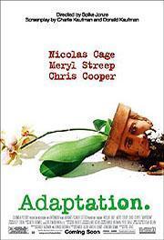 Charlie Kaufman demuestra que es el guionista más inteligente y brillante del momento. El guión de Adpatation es un ejercicio de ingenio puro, mezcla de realidad y ficción, autorreferencial, complejo, surrealista, honesto y crítico. Es increíble como juega con su realidad, las escenas del rodaje de Como ser John Malkovich y su propia persona, para contarnos los problemas de adaptar una novela al cine, el bloqueo creativo del escritor, todo con una profundidad enorme. Además la película trata muchos temas como la incomunicación, la búsqueda de identidad y sobre personas solitarias, que se aferran a lo que pueden para lograr ser felices, y el difícil proceso de "adaptación" humana (hasta el título de la película es una genialidad). Estoy de acuerdo con lo que dice Hawley Griffin. Al ser una película compleja y tan poco convencional puede haber gente que la desprecie en un primer momento, por ello recomiendo a quien no le guste que la vean más de una vez porque no tiene desperdicio. El final, por ejemplo, es desconcertante y surrealista, hay persecuciones, drogas y violencia, lo que puede chocar con el resto del film. Sin embargo todo forma parte de la brillantez de Kaufman y Jonze, de la ácida crítica que esconde la película hacia la comercialidad de los guiones (véase el hermano gemelo de Charlie, en la ficción). No es más que una burla irónica a los finales a los que nos tiene acostumbrados la gran industria norteamericana. En el desenlace de la película confluyen las historias de los tres personajes y todo cobra sentido. Con su segunda película, Spike Jonze se ha convertido categóricamente en uno de mis directores favoritos en la actualidad. Hace gala de una maestría visual y narrativa sin precedentes, además de una dirección de actores inmejorable. La fotografía de la película es excelente al igual que la música. Nicolas Cage me encanta, pero además en esta película está mejor que nunca, con una doble interpretación sensacional. De oscar. El hermano gemelo Donald es quien nos trae los momentos más divertidos del film. En la escena de la fiesta no podía parar de reir. De Meryl Streep sobra decir nada, magnífica como siempre y Chris Cooper, merecidísimo ganador del oscar, lo borda.