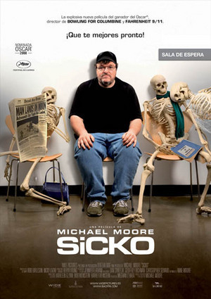 | Crítica |  Puntuación del crítico: 9 | Tras las excelentes "Bowling for Columbine" y "Fahrenheit 9/11", Michael Moore vuelve con mas polemica y nuevas noticias y datos impactantes con "Sicko". Es dificil, tanto en esta, como en las dos peliculas anteriores de Michael Moore definir el sentimiento que mas te causa al verlas y decir que genero toca: comedia, drama... Michael Moore vuelve a conseguirlo, ahi escenas conmemorativas, otras divertidas, otras dramaticas, impactantes, omicas...todo un coktel de fotogramasy dialogos en un mundo desconocido, el nuestro. Cada vez que veo una pelicula de este genial director, uno no sabe en que mundo vive hasta que ve una de sus pelsi es decir, descubres cocas impresionantes, cais imposibles y imprevisibles. Yo he reido y llorado con este film, al igual que sus antecesoras, y es que Moore destripa el sistema de salud y todo lo que le rodea basandose en muchas experiencias del ciudadano medio(muchas de ellas deficiles de creer). Hay partes favoritas esta claro peor no mencionare ninguna porque lso que hayan visto una de las 3 pelis mencionadas(esta inclusive) sabran que merece la pena verla sin contar nadaye ir sintiendo y descubriendo y asobre todo interiorizando lo que Moore quiere. Como siemrpe esta muy bien acompañado con al musica y al fotografia, y su final que te deja un buen sabor de boca.